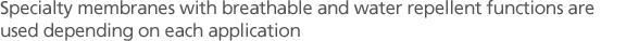 - With numerous fine pores, it emits inside vapors while protecting from rain and wind. Air and moisture permeability are excellent.