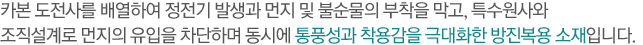 - Â÷º°ÈµÈ Èİ¡°ø±â¼ú Á¢¸ñÀ¸·Î ´ëÀü¼º ¹× ¸ÕÁö, Àâ±Õ ºÎÂø ¹æÁö ±â´ÉÀÌ Å¹¿ùÇÕ´Ï´Ù.